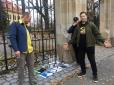 У столиці Чехії Празі активісти принесли під російське посольство йоржики для чищення унітазу, натякаючи на мародерство росіян на захоплених українських кораблях, звідки зняли навіть унітази і вкрали особисті речі моряків. Фото з акції опублікував у св...