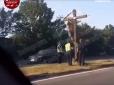 Чоловік в одних шортах заліз на хрест, але йому це не дуже допомогло. "Так от поліції ще ніхто не намагався втекти", - підписав кадри автор публікації. На них можна побачити, що чоловік в одних шортах заліз на хрест, під ним стоїть кілька поліцейських,...
