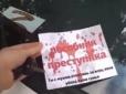 . На відеозаписі видно, що на лобовому склі автомобіля росіянки було залишено листівку з тек...